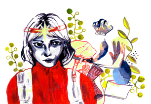 Extrait de mon projet de diplôme "Imago", un livre qui illustre l'entrée dans l'âge passerelle entre l'adolescent et l'adulte. L'héroïne, Aline, parcours un éventail d'émotions nouvelles, douces comme chaotiques, à travers la métaphore filée des insectes, qui l'accompagnent et la représente dans ces épreuves. Un livre composé de 6 chapitres, relié, imprimé, écrit, et illustré par mes soins.